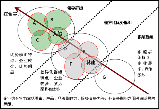 (四)同類產(chǎn)品競爭群組分析(通過對重點生產(chǎn)企業(yè)的綜合實力的評價,將企業(yè)分為三個組群,用以劃分企業(yè)所處的市場地位,明確發(fā)展目標及未來發(fā)展規(guī)劃)