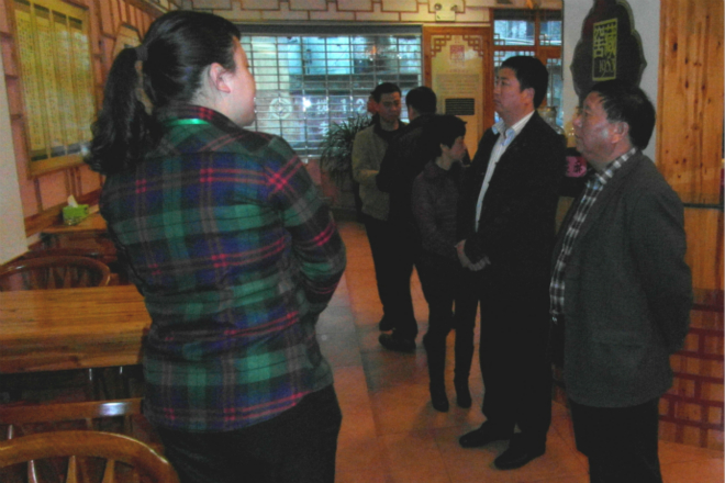 2013年3月27日下午,國家工商總局市場司周處長一行在市工商局朱副局長、縣工商局許局長等陪同下蒞臨我公司進行檢查指導(dǎo),公司相關(guān)領(lǐng)導(dǎo)全程陪同,熱忱接待。周處長一行在朱副局長等領(lǐng)導(dǎo)的陪同下首先來到我們的醋吧展示廳,在講解員的接待和介紹中了解了老醋公司的品牌歷程、企業(yè)榮譽、醋文化等。周處長充分肯定了老醋公司近年來取得的成績并提出了保護、發(fā)揚老醋傳統(tǒng)技藝、文化等要求。接著,周處長等領(lǐng)導(dǎo)參觀了全國保留最完整的傳統(tǒng)老醋釀造工藝,近距離地觀看了糯米炒熟、紅曲攪拌、紅酒發(fā)酵的情形,在切身感受到純手工釀造的不易和紅酒池散發(fā)的濃濃酒味中體會到了永春老醋在用料和釀造工藝流程方面的獨到優(yōu)勢。.jpg)