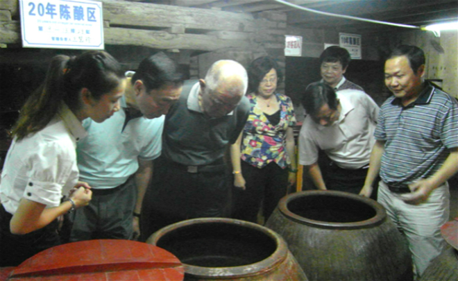 2013年9月8日下午,中國輕工業(yè)聯(lián)合會榮譽會長、原輕工部副部長張善梅、原全國總工會書記處書記、華僑茶業(yè)發(fā)展研究基金會常務(wù)副理事長李永安以及原中國茶葉總公司副總經(jīng)理、華僑茶業(yè)發(fā)展研究基金會副理事長兼秘書長邵曙光等一行人在縣領(lǐng)導(dǎo)的陪同下蒞臨老醋公司參觀指導(dǎo),公司領(lǐng)導(dǎo)全程陪同,熱忱接待。張會長等一行領(lǐng)導(dǎo)先在醋吧了解了永春老醋的發(fā)展歷史、老醋公司的發(fā)展歷程以及獲得的諸多榮譽還有釀醋文化以及四大名醋的介紹,之后在講解員的帶領(lǐng)下參觀了老醋釀造的整個工藝流程:“從糯米蒸煮到紅曲攪拌再到紅酒發(fā)酵再到最后的灌裝成品。”每個過程都延續(xù)了傳統(tǒng)優(yōu)良工藝,秉承精益求精釀造放心食醋的釀醋精神。.jpg)
