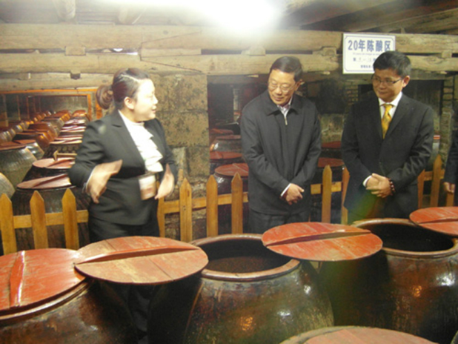 2014年3月3日下午,福建檢驗(yàn)檢疫局局長、黨組書記支毅隆等一行人在縣領(lǐng)導(dǎo)的陪同下蒞臨老醋公司參觀指導(dǎo),公司領(lǐng)導(dǎo)全程陪同,熱忱接待。支局長等一行領(lǐng)導(dǎo)先在醋吧了解了永春老醋的發(fā)展歷史、老醋公司的發(fā)展歷程以及獲得的諸多榮譽(yù)還有釀醋文化以及四大名醋的介紹,之后在講解員的帶領(lǐng)下參觀了老醋釀造的整個(gè)工藝流程:“從糯米蒸煮到紅曲攪拌再到紅酒發(fā)酵再到最后的灌裝成品。”每個(gè)過程都延續(xù)了傳統(tǒng)優(yōu)良工藝,秉承精益求精釀造放心食醋的釀醋精神。