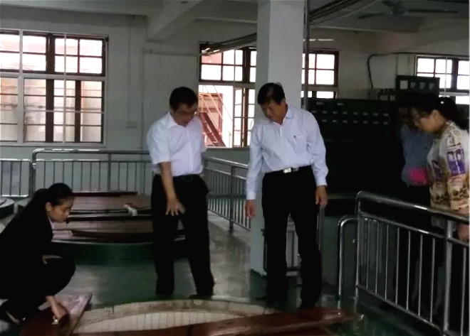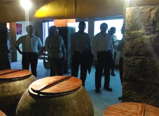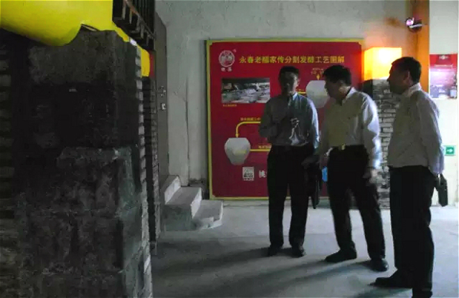 從窖藏車間出來后,在講解員的引導(dǎo)和公司領(lǐng)導(dǎo)的陪同下,郭董事長一行人先后參觀了花崗巖石陳釀罐,糯米蒸煮,紅酒發(fā)酵等老醋釀造過程和設(shè)備。