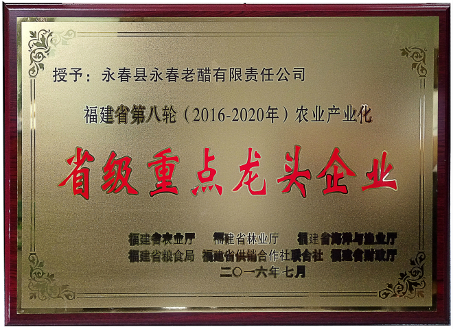 熱烈慶祝永春老醋公司入選“福建省第八輪農(nóng)業(yè)產(chǎn)業(yè)化省級重點龍頭企業(yè)達標名單”