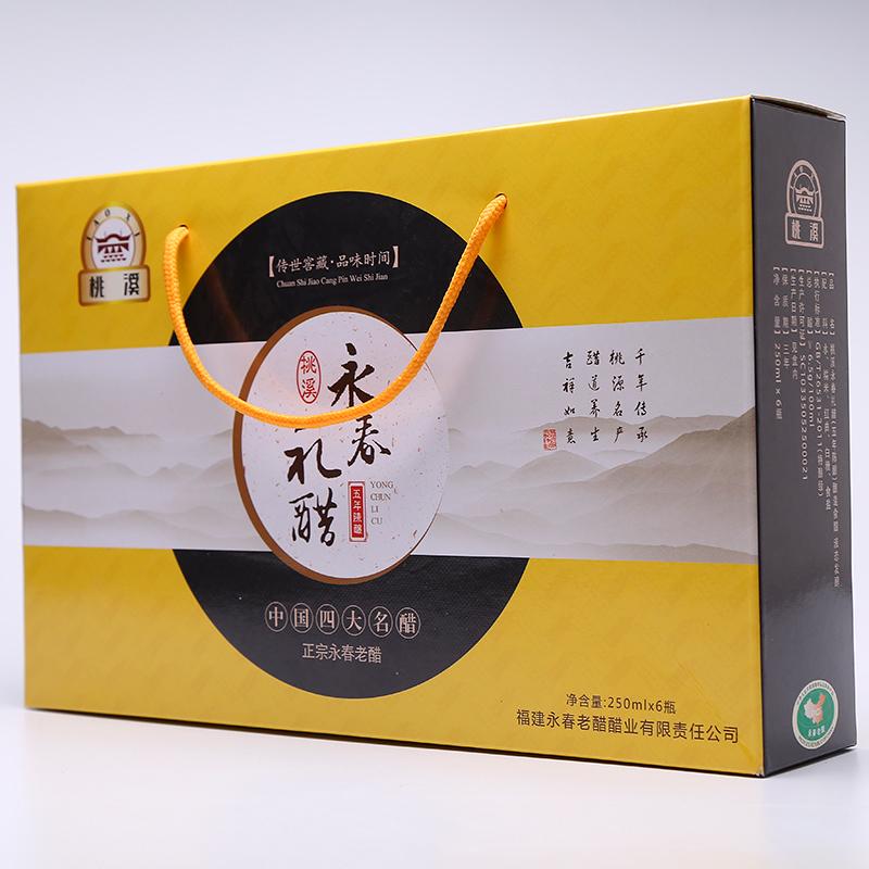 選用優(yōu)質(zhì)糯米、紅曲、原產(chǎn)地水源等為原料,傳承千年獨(dú)特釀造工藝(液態(tài)深層發(fā)酵),純糧釀造,歷經(jīng)五十多道生產(chǎn)流程,經(jīng)年發(fā)酵陳釀,平均酸度5.0-6.5。故出此風(fēng)味獨(dú)特,濃酸回甜,無(wú)添加劑,品質(zhì)上乘的桃溪永春老醋。具有酸、香、甜、鮮、色的特點(diǎn),非常適合增味助鮮。采用精美的禮盒包裝,送禮自用兩相宜!送禮親朋,有禮有面!