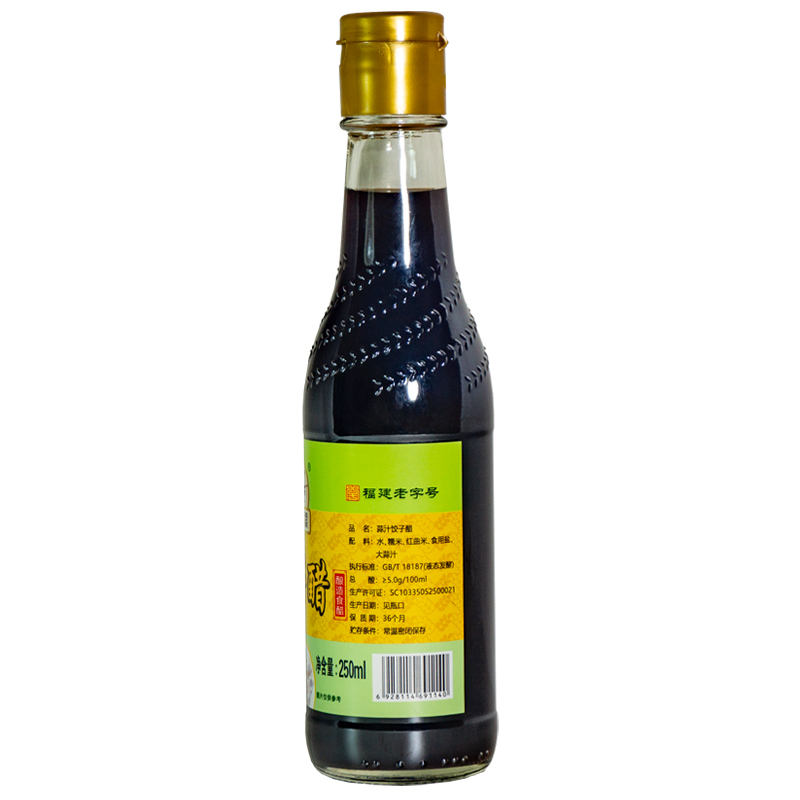 選用陳釀多年的永春老醋(液態(tài)發(fā)酵,純糧釀造),輔以精心秘制的大蒜汁佳釀?wù){(diào)制而成。酸度5.0,其蒜香撲鼻,入味醇香,酸而不澀,而且無需添加劑和防腐劑。具有酸、香、味、鮮、色的特點(diǎn),非常適合蘸食餃子,增香助味;也可用于火鍋、涼拌、燒烤調(diào)味等。